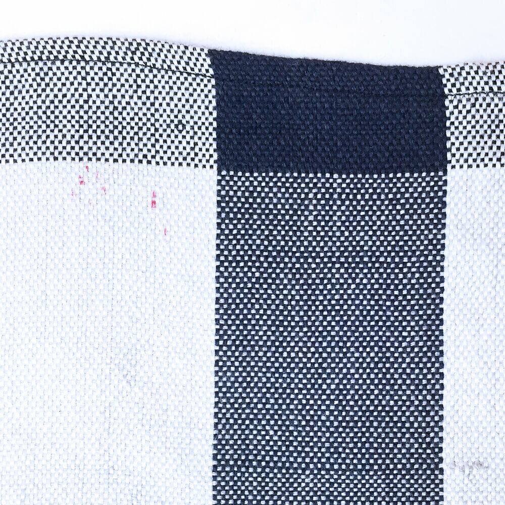 ダークネイビーのシンプルなチェック。薄いグレーのストライプに、ダークネイビーのエッジできりっとしまった1枚です。(中厚手)